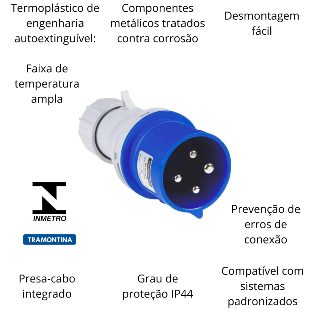 Intercambiável com outros produtos desenvolvidos em conformidade com a norma IEC 60309.